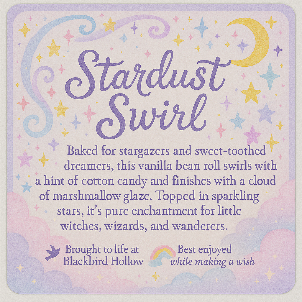 A bakery favorite! Our cinnamon rolls iced with cotton candy icing and a marshmallow drizzle! Gold edible stars and of course sprinkles!