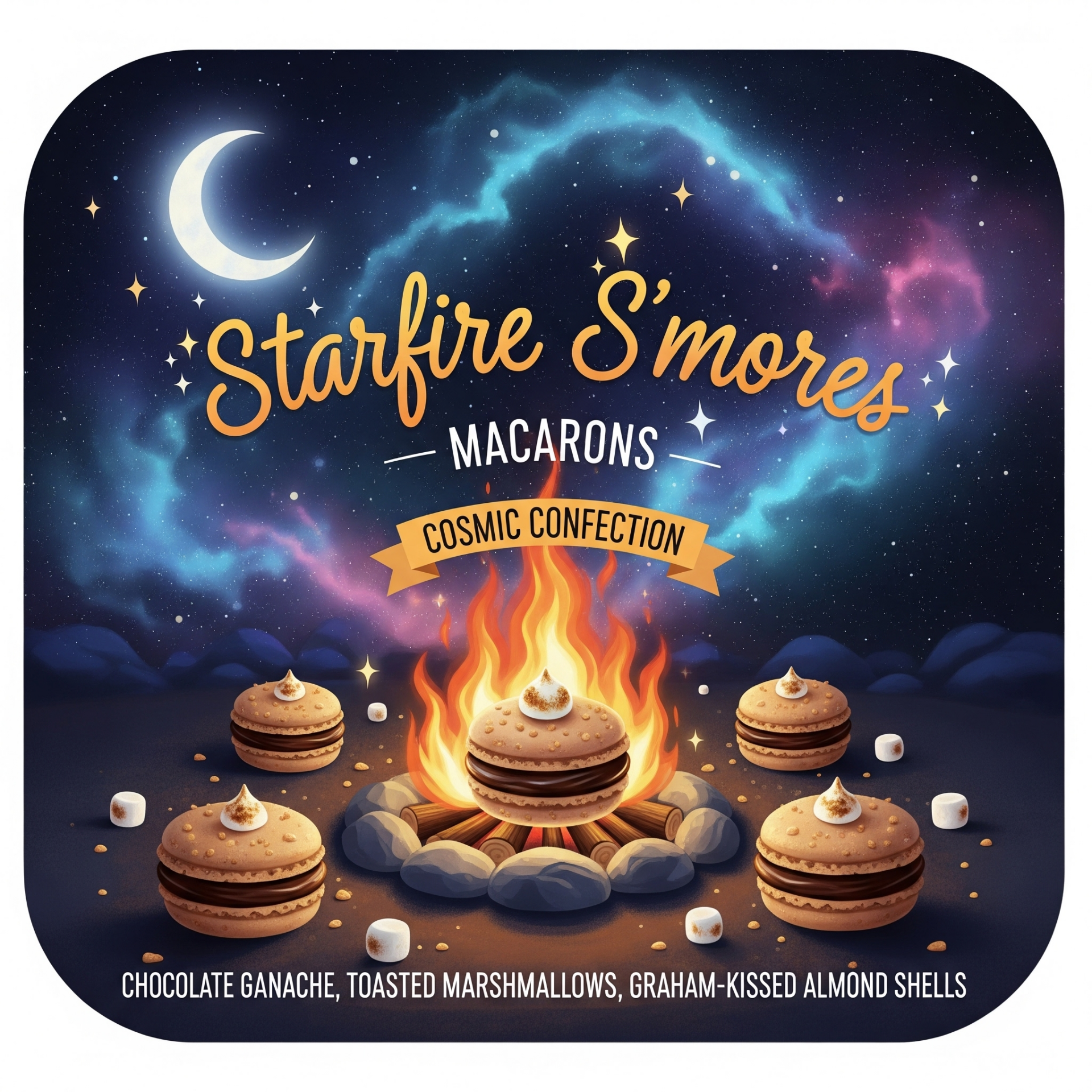 A cosmic confection of chocolate ganache, toasted marshmallows and graham-kissed almond shells — each one carrying the warmth of a midnight campfire under a spell-lit sky.