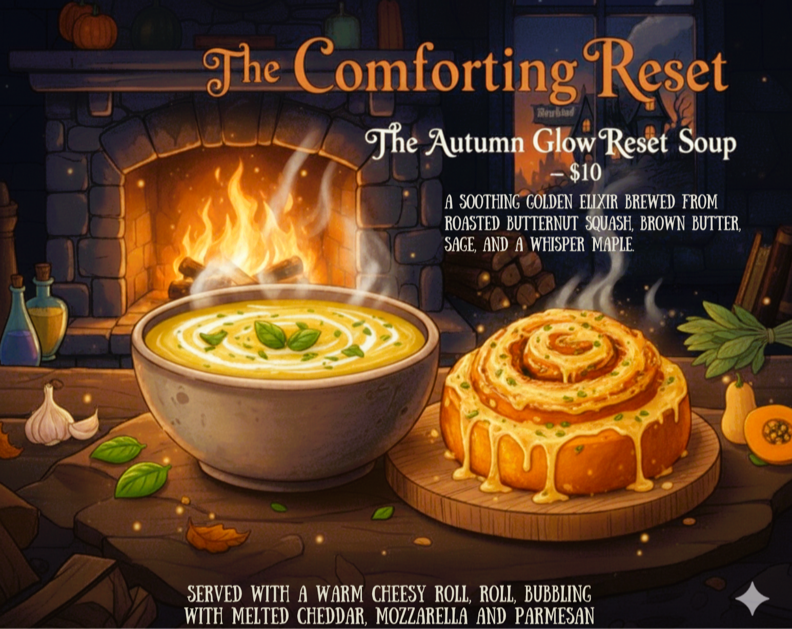 🥣 The Comforting Reset - 🍂 Autumn Glow Reset Soup + Cheesy Garlic Roll