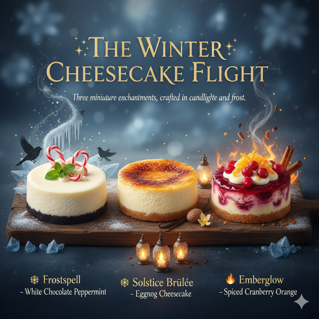 ✨ THE WINTER CHEESECAKE FLIGHT Three miniature enchantments, crafted in candlelight and frost.